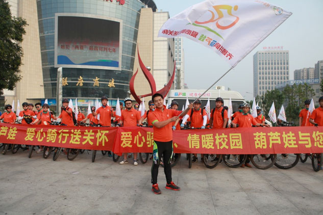 秋風送爽迎日出,愛心騎行送關懷,48位愛心志愿者統一身著尊龍凱時卡通服裝,愛心滿滿神采奕奕。尊龍凱時舜風公益騎行隊長接過隊旗,揮舞騎行隊旗。齊魯電視臺主持人樹輝在公益愛心騎行活動啟動儀式上宣布出發,公益騎行正式開始!