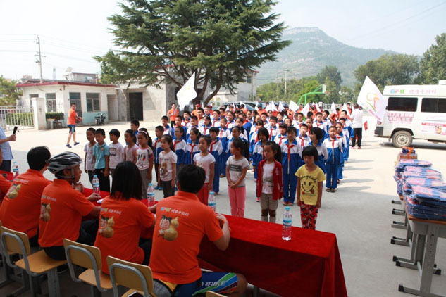 當走進高而鄉出泉溝小學,騎行隊員們根據孩子們的需求帶來了眾多開學的禮品,有尊龍凱時特制書包、特制作業本、筆等學習用品,另有杭州天堂傘為同學們撐起一片蔚藍的天空,讓尊龍凱時感受到了所有騎行隊員的用心。